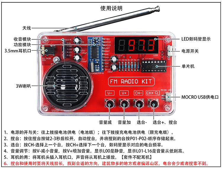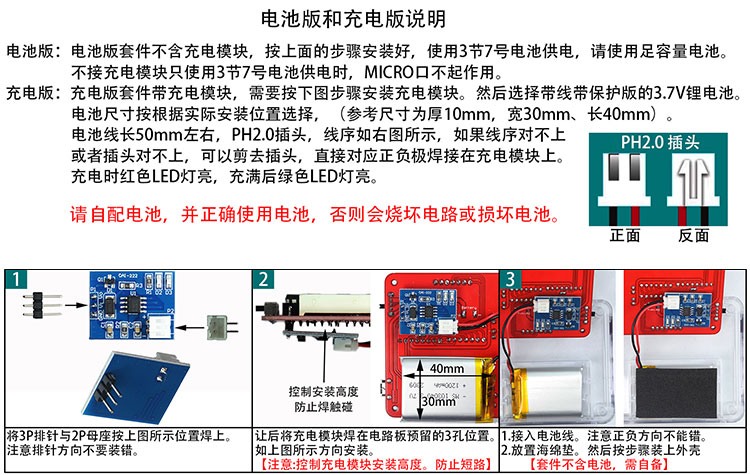 7、通电调试时,注意电源正负不能反。电压不能超过3V。