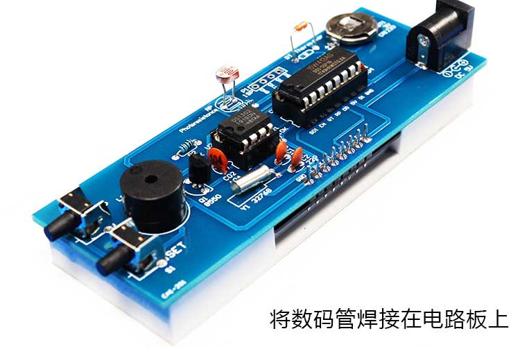 数码管要先将排针焊接在数码管上,再将数码管焊接在电路板上。