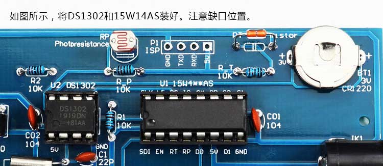 集成电路要先安装管座,待所有元件安装完成后再将集成电路装入管座上,集成电路和管座的缺口位置要对准电路板上的缺口标记位置安装。