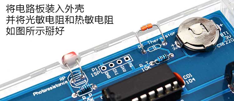 安装光敏电阻和热敏电阻时,要留出1cm的高度,再折弯一下。